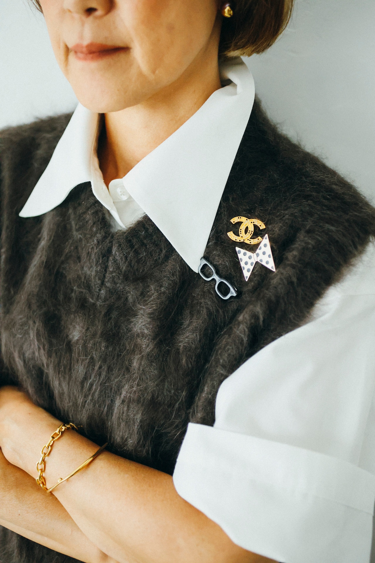 「暑がりなので冬もカットソーは7部丈や半袖を着たい!だからベストを着て場合によってはアームウォーマーをつけた方が気候の変化に対応できるし着ぶくれしないし最高!アームホールの大きさにもかなりこだわり、シャツなども合わせやすく仕上がりました!」
