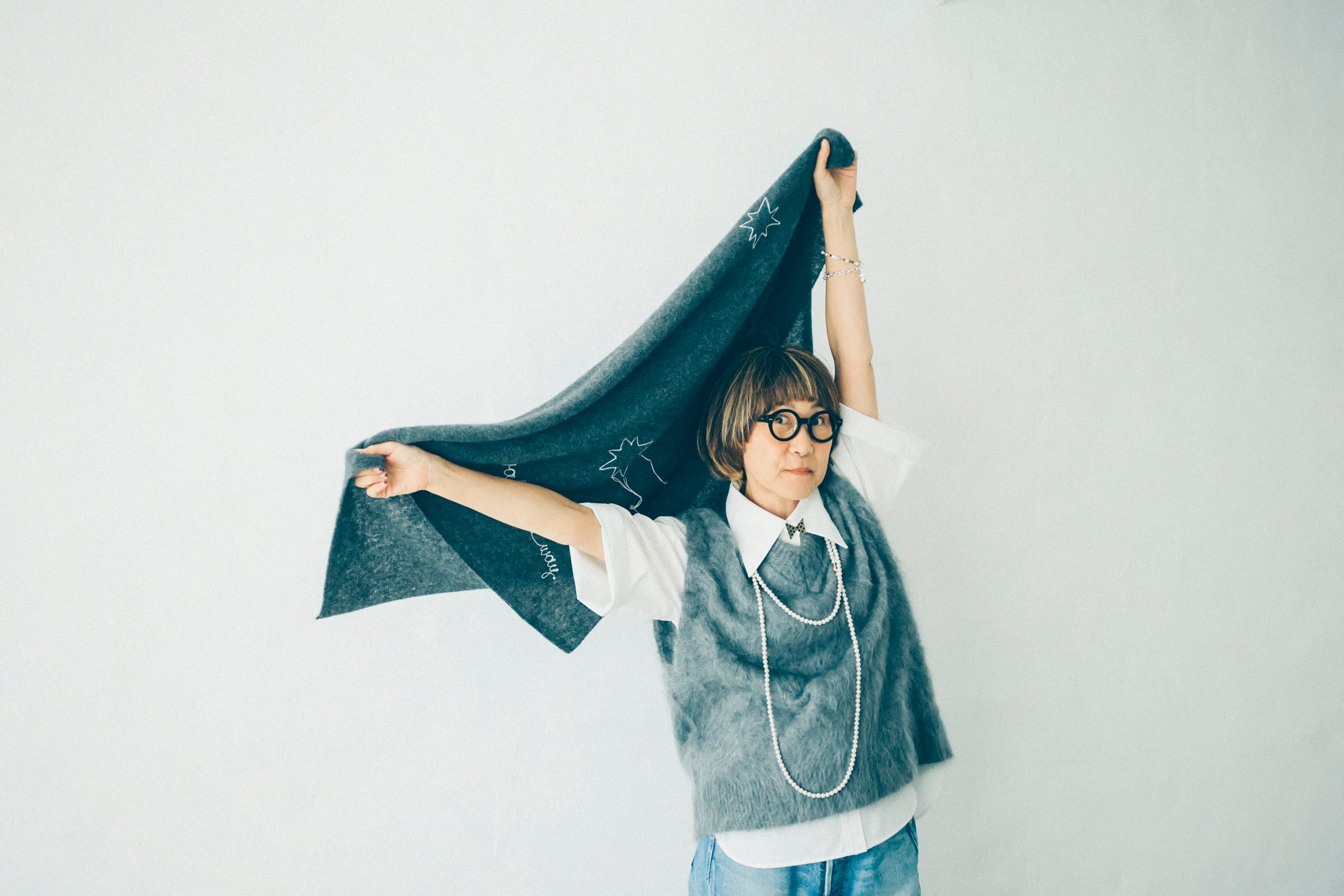 「BRAVO everyone by HIRO」第2弾コラボは、HOKOSwarmer&goodsの高級ライン、「至福」という意味を持つHOKOS BLISSより、折りたたんで三角ストールとしても使える正方形のカシミア刺繍ストールを作りました。