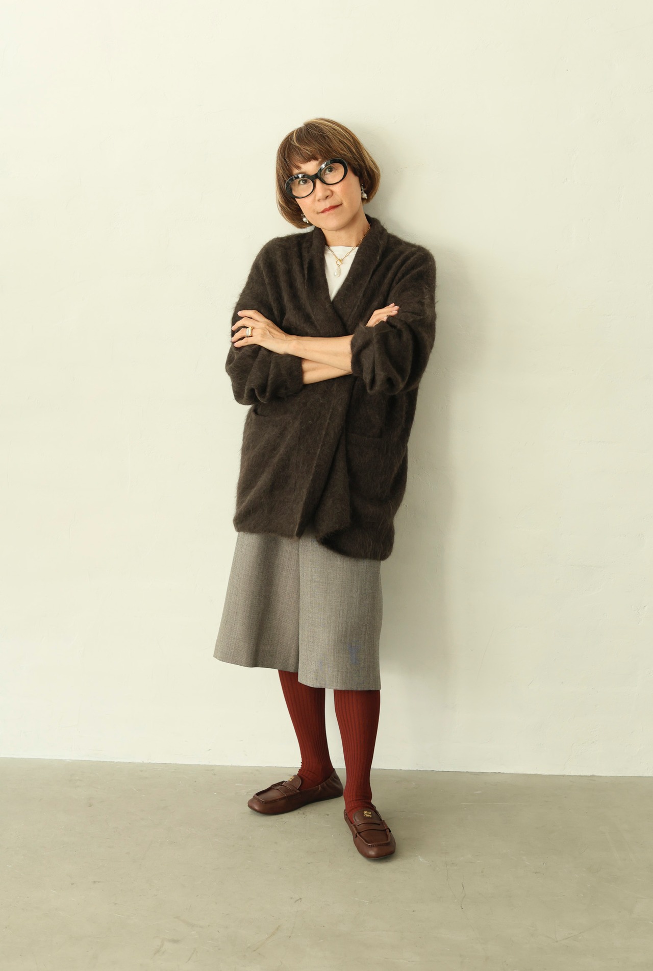 シルエットは、前を留めない着流し(トッパー)仕様に仕立て、リラックス感とエレガンスを両立。体型を選ばず、さまざまな方に美しくフィットするよう、パターンや分量感にも徹底的にこだわりました。着る人のスタイリングや動きによって自然に揺れ、表情を変える一着です。