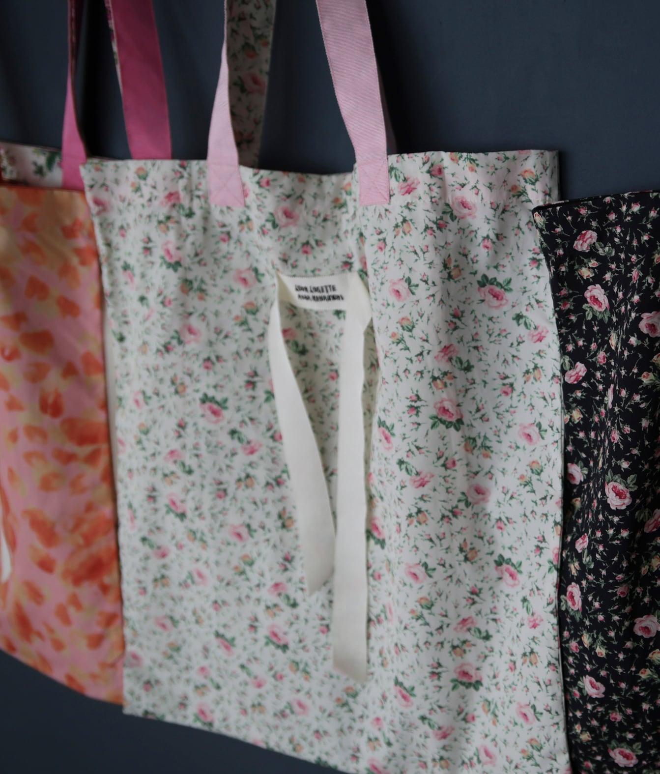 LEUR LOGETTEさんのお洋服の生地に、金森青葉氏が描いたイラストレーションがプリントされたバッグです。