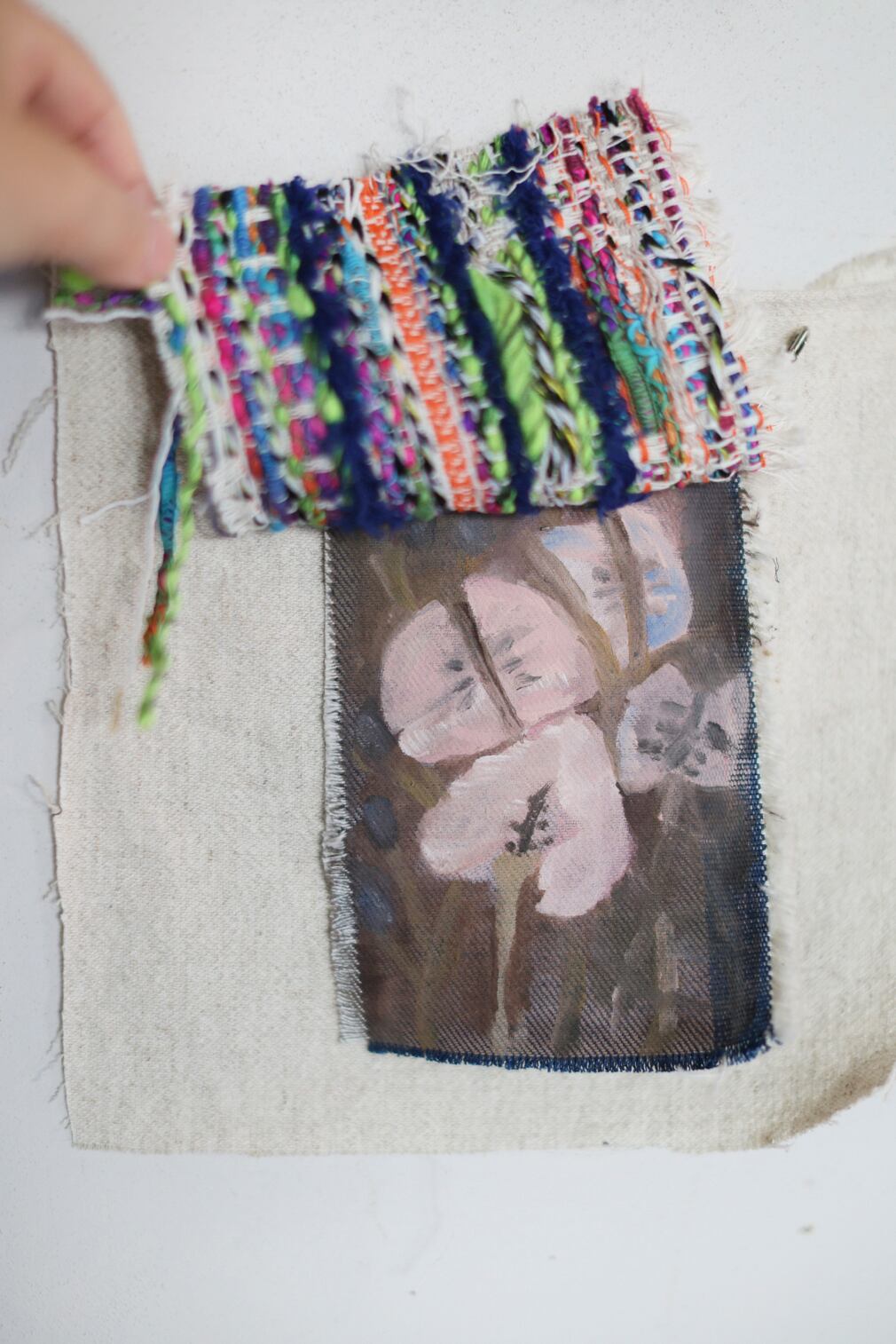 LEUR LOGETTEさんのお洋服の生地に、金森青葉氏が描いたイラストレーション。生地をそっとめくると、青葉さんののイラストが現れます。ぜひ、おうちの壁にピンで留めて、気軽に飾ってお楽しみください。ふと目に入るたびに、少しだけ気分が上向くような、そんな一枚になりますように。
